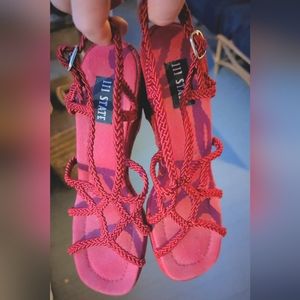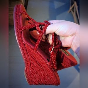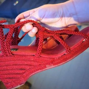Fun red wedges in size women's 9. A little bit of wear but overall in good shape and a fun statement shoe!