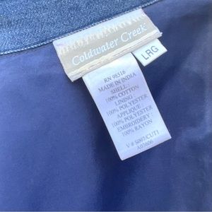 Vintage Coldwater Creek Denim Blazer With Silk Paisley Floral appliqué Large