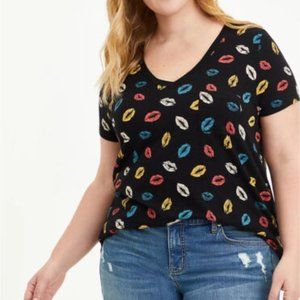 NWOT Torrid Womens Black Multicolor Lips Cotton Short Sleeve Top 1X PLUS