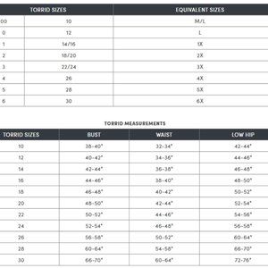 PLEASE NOTE: These are Torrid vanity sizes; please refer to the size chart attached