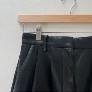 These are high-waisted, long-leg shorts with a double knife pleat. They're made with soft vegan leather that looks and feels like the real thing.