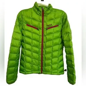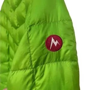 Women’s lime green Marmot down jacket. Size M