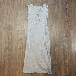 Free People Heathered Grey Cut Out Sleeveless Maxi Dress in size small. Armpit to armpit is 17.5 inches. Waist is 15 inches. 46 inches long. 100% cotton.front slit. In excellent condition.