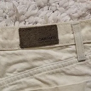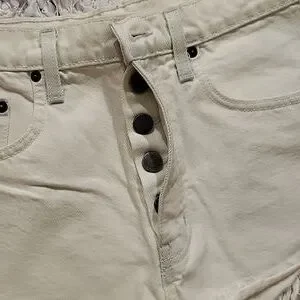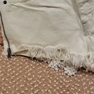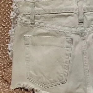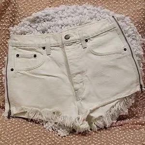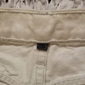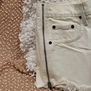 Carmar white denim high waisted raw hem Jean shorts size 26, buttonfly, side zippers, 5 pockets, never worn in excellent condition see all photos!