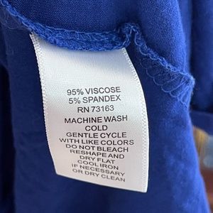 This item is made in the color rich blue. The material is soft, stretchy, thin and breathable. The brand name, size and details are included in the pictures. Measurements are 27" long and 21" across.