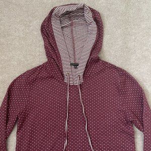 Staccato Womens Hoodie Small Burgundy White Polka Dots Stripes Pullover