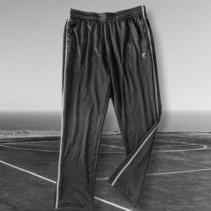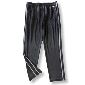 These very well may be vintage, but they're in perfect condition except for the back hip logo. Inner drawstring and pockets. Double stripe down both sides.