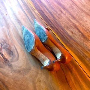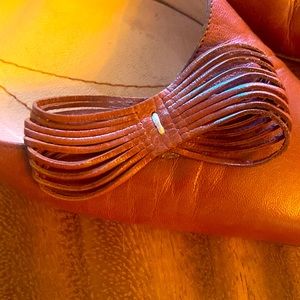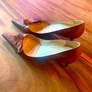 Kate Spade cognac, leather kitten heels. Impeccable bow design on these! Beautiful touch on these shoes. Hate to let them go!! But they are one size too big. American size 10, but I feel like it’s more of a 9.5.
