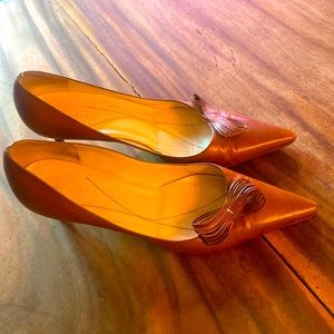 Kate Spade cognac, leather kitten heels