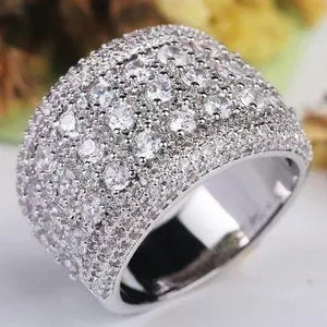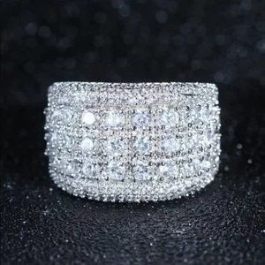 NEW 925 SILVER ROUND DIAMOND PAVE WIDE RING, CUTE RING, SHINY RING.