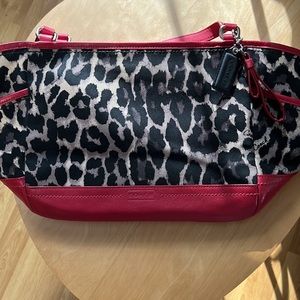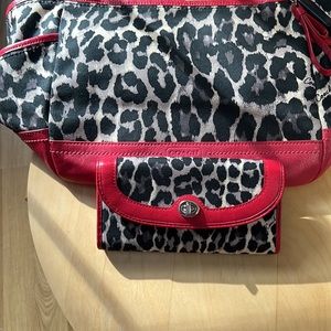 Coach ocelot print Carrie tote with matching wallet.