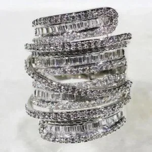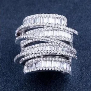 BAGUETTE 6.4 CT DIAMOND 925 STERLING SILVER RING