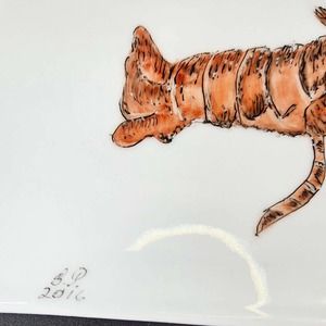 Vintage hand painted lobster signed flat ceramic sushi platter decorative plate. Measures about 12X6. In excellent condition. There are felt strips glued to the bottom ...I wonder if the maker is marked underneath, but they are glued on very well.