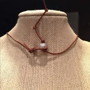 🐚Genuine Freshwater Pearl & Leather Necklace 🐚