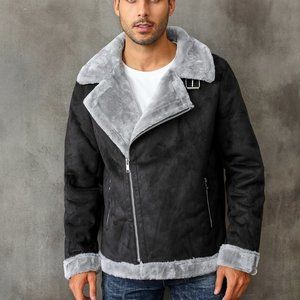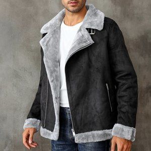 Black Casual Mens Teddy Lined Zip Up Faux Suede Coat