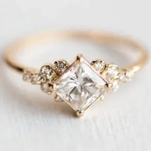 NEW 18K YELLOW GOLD DIAMOND PRINCESS RING, CUTE RING, SHINY RING.