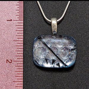 Wow Signed Silver Dichroic & Black Solid Glass Pendant w/ Sterling Silver Chain