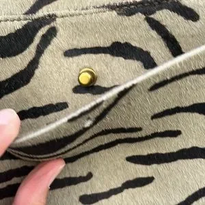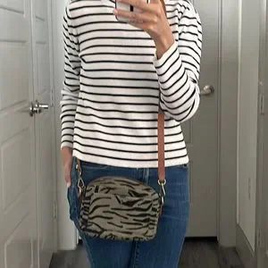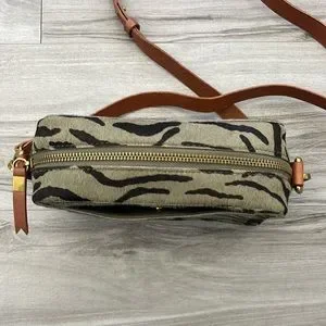 BWT - Super cute bag ! shoulder bag is sized to hold a lot! *Made of tiger-striped calf hair, it's cool, convenient and comes with an adjustable leather shoulder strap. Calf hair, leather. Zip closure. Exterior slide pocket. Measurements 21 1/2" leather strap drop. 48 3/8" (at longest) webbing strap. 5"H x 7 1/2"W x 2 3/4"D.* No visible damage or flaws! Thank you for stopping by! ***I try to describe things as accurately as possible. Please check all pictures for quality and details! Any questions please ask before buying.***