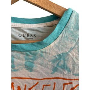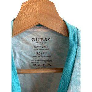 Guess Blue White Tie Dye Short Sleeve Tshirt Crop Top Women's Size XS Los Angele