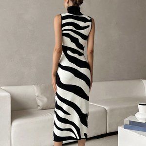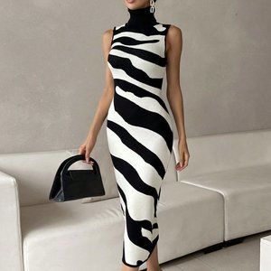 Black & White Casual Womens Two Tone Turtleneck Sweater Dress