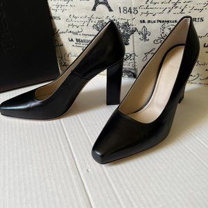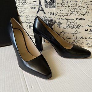 Theory Slim Square Pumps Shoes Size 40/9 Black All Leather Classic Heels Italy