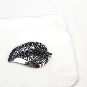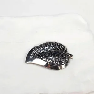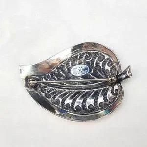Vintage Danecraft Ornate Sterling Silver Signed Leaf Brooch