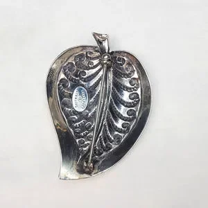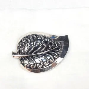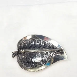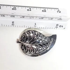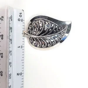 Gorgeous Vintage Danecraft Ornate Sterling Silver Signed Leaf Brooch