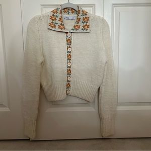 Zara Knit Floral Collared Sweater