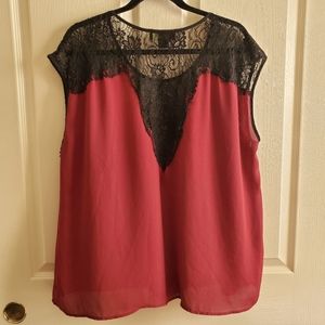 Forever 21 Plus Size 1X Black Lace and Burgundy Blouse