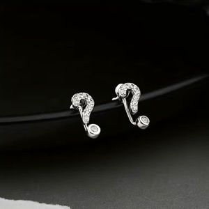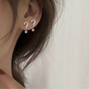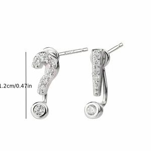 Brand New Silver Tone Question Mark Zircon Stud Earrings