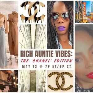 "Rich Auntie" is synonymous with Luxury: monogram bags, premium fabrics, hourglass silhouettes, ruffles, polka dots, tailored blazers, faux fur and leather, animal print, pearls and BLING!