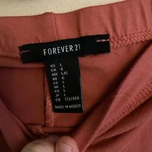 1 legging - Forever 21 deep coral high waist big flare/bell leg in medium weight soft brush stretch, opaque and very flattering with long inseam, very comfy