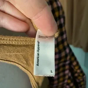 1 tank - American Apparel warm tan/brown cotton racer back tank, long line (tied to look cute here but goes over hips)