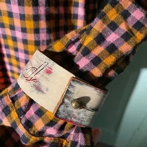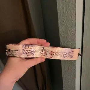 1 handmade painted leather bracelet with brass detail “Life is good”
