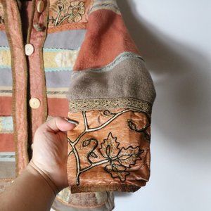 Vintage Flashback Boho Patchwork Tapestry Button Jacket Floral Striped Cotton