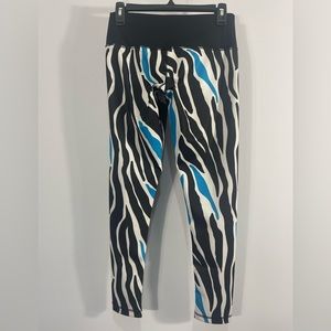 Women’s Adidas Climate Compression animal print leggings, Small, Black, White,Blue