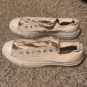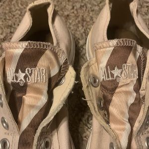 Converse low slip-on No laces Cream with stripe tongue 7 women 5 men Brown/tan