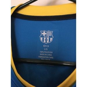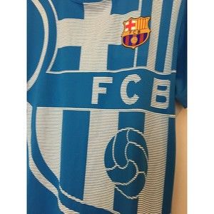 FCB BARCA Men's Athletic Short Sleeve Shirt Soccer Sz L MultiColor Top in good condition. There are a few snags on this top in places.