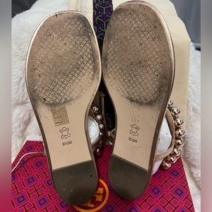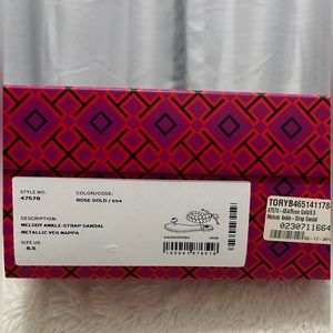 Beautiful Tory Burch strap sandal in rose gold. True to size 8.5. Super comfortable. Sad to let them go but worn once walking around in NCY, the rest stayed in the box. Comes with original box and dust bag.