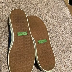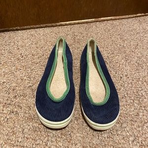 Navy with green trim corduroy LL Bean fleece lined flats/ ballet like shoe to keep feet warm on fall days