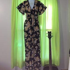 Exhilaration floral print jumpsuit, Sz medium, side, pockets, cinched wa…