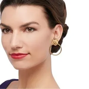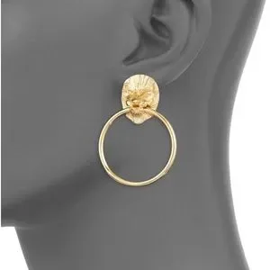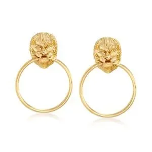 Italian 18kt Yellow Gold Over Sterling Silver Lion Head Doorknocker Earrings