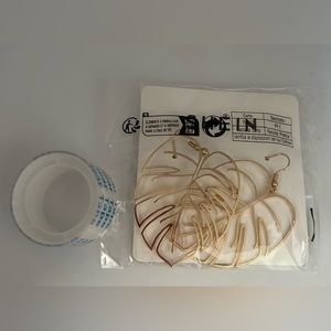 NEW Shein Large Holographic Cut-out Golden Monstera Leaf Dangle Earrings