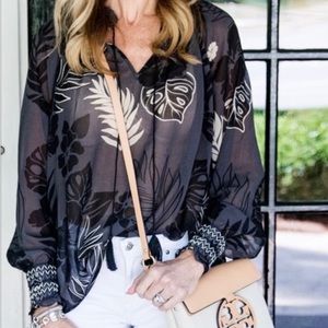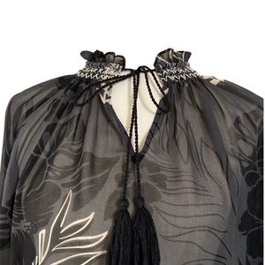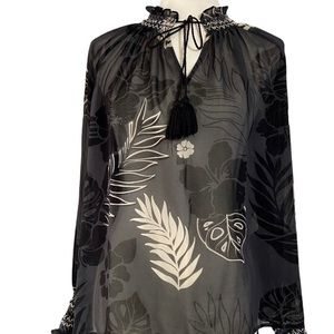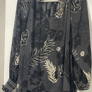 CAbi 5597 Aloha Blouse Sheer Floral Peasant XL