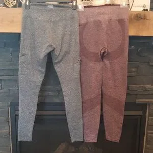 set of two PINK brand leggings the gray have both regular and cargo pockets the maroon are seamless and form flattering