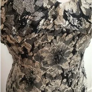 Wishes Wishes Wishes Small/Medium midi dress with black lining. Lots of beautiful lace detailing. Modeled on a full size mannequin.