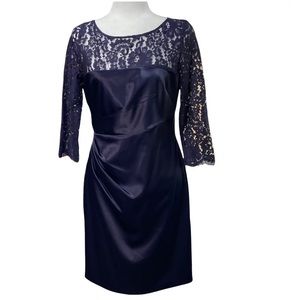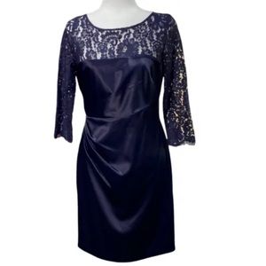 Eliza J Navy Blue Satin and Lace Cocktail Dress SZ 4