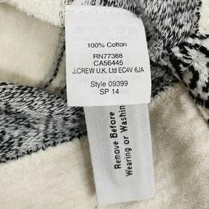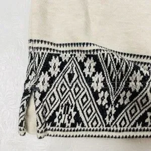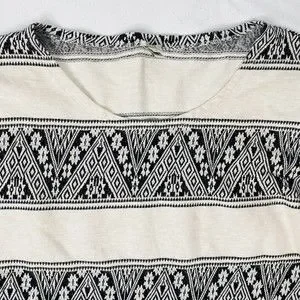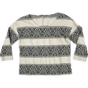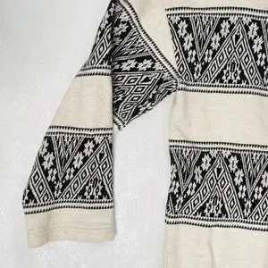 J Crew Women's Sz Small Black and Cream Graphic 3/4 Sleeve Sweatshirt Sweater Cotton