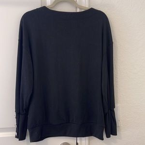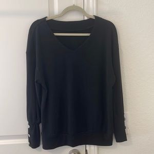 EUC black sweater, slightly longer and oversized. Has a nice v neckline with beautiful button sleeves