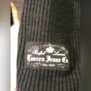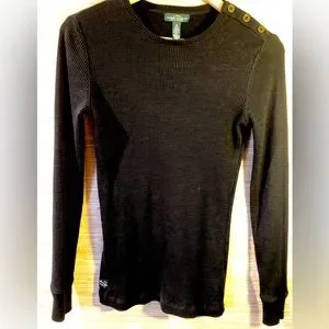 NWOT gorgeous rib knit, lightweight sweater in black. RL quality, fit and style. Brass button detail on shoulder